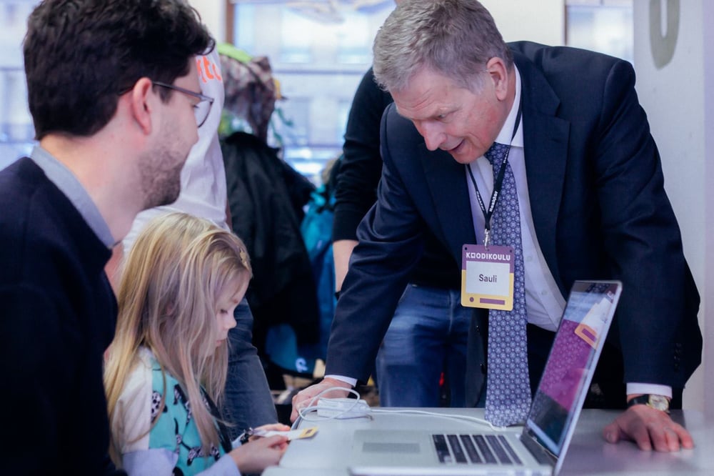 It started out as a humble club for the offspring of Reaktor employees. Little did we know it’d end up in the Finnish head of state, Sauli Niinistö, writing his first line of code. Right next to the diginatives of the 2010s. As one of the first presidents in the world.
