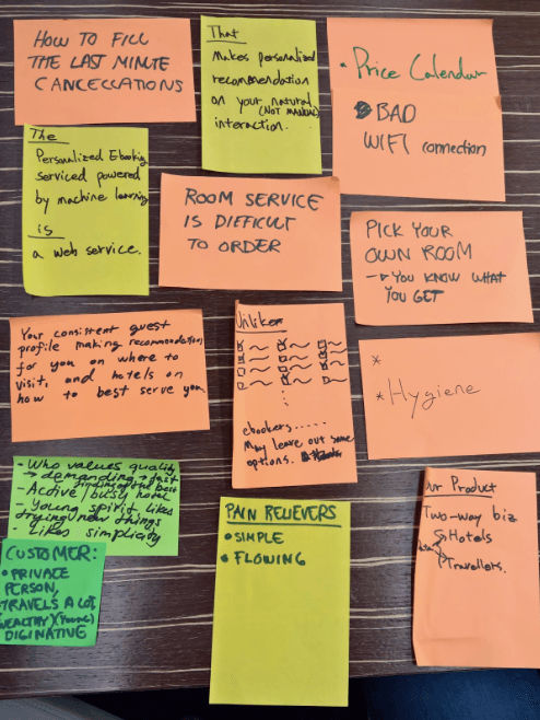 We started by quickly brainstorming ideas about what we didn’t like about hotels. This is what we came up with:
