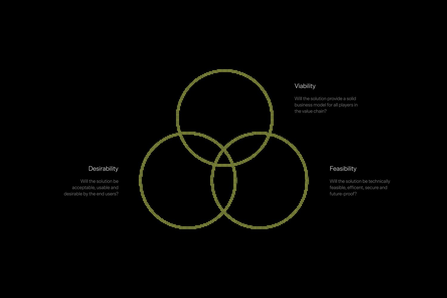 The search for the sweet spot in the intersection of the three lenses of innovation is best done iteratively. Early drafts of the value proposition and the designs can be evaluated with the clients and end-users. For this, product management and design typically work together to create mock-ups and prototypes of increasing fidelity. With each validation round, the confidence in the value proposition increases and the product design is solidified.