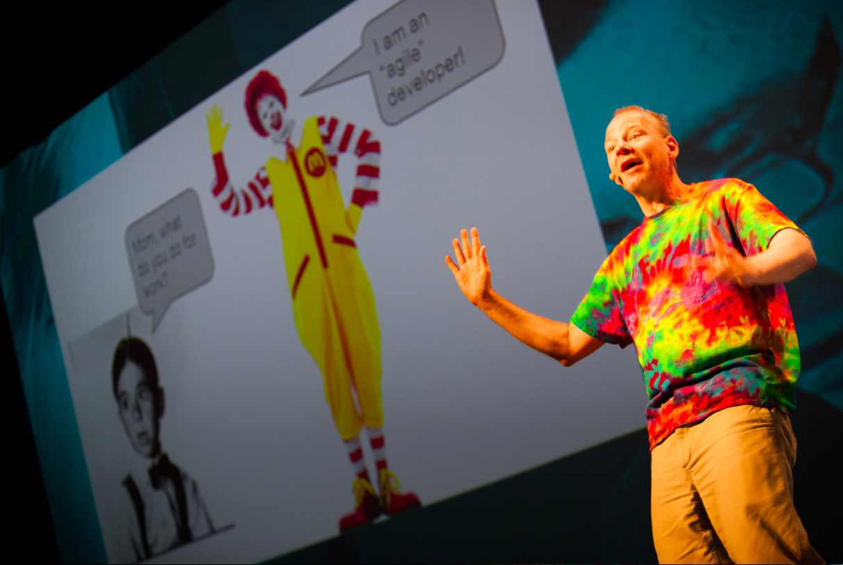 – The problem with Scrum is that it’s buzzwords: it is talking about code, not actually doing code. Stand-ups are the worst thing ever invented. Agile is a pyramid scheme.