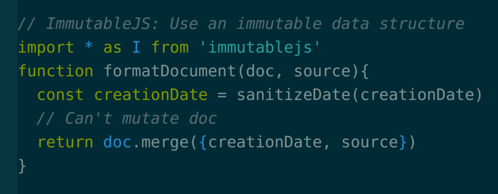 So you write better JavaScript. You agree with your team, explicitly or implicitly, to write in an immutable style.