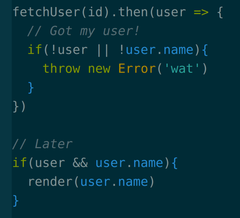 One way to stave off the fear is to introduce optional types via TypeScript or Flow. You receive a user and then proclaim joyously that it is of the User type, and henceforth shall be treated only as a User.