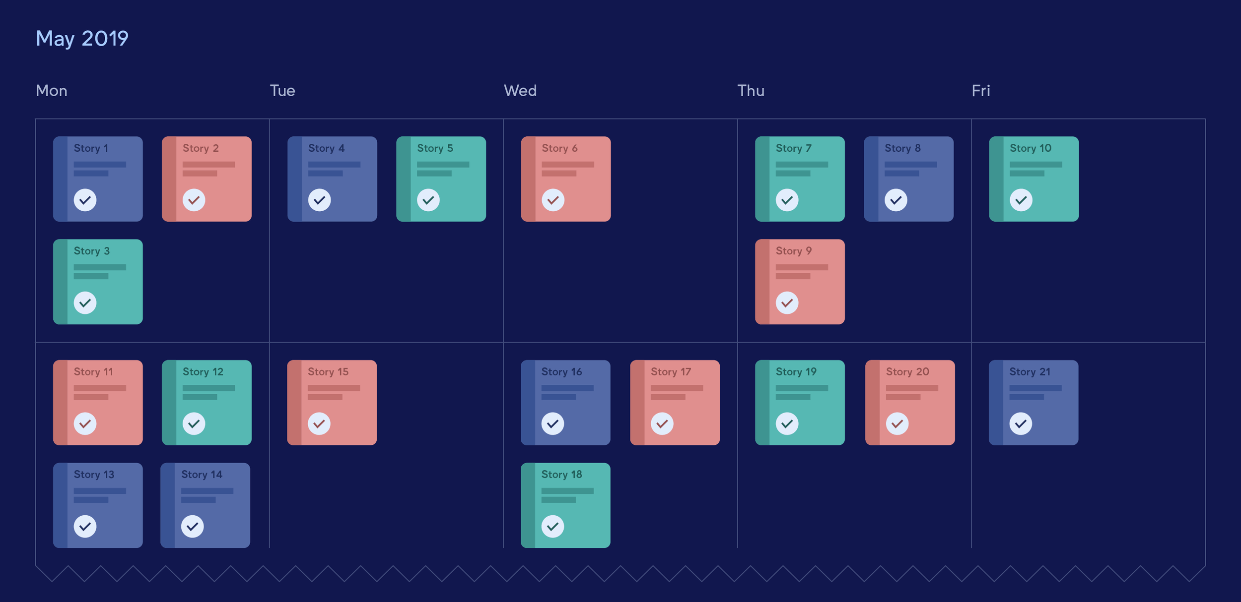 As the basis for this prediction we will take the throughput of our process. Throughput is the amount of work that comes out of your project by unit of time. It’s up to you to decide what units make sense for your context. Days, weeks, sprints, stories, bugs, epics - anything goes as long as you’re consistent. Let's say for this example we are measuring the amount of stories per day. You can count how many stories get to the end of your process on a daily basis.