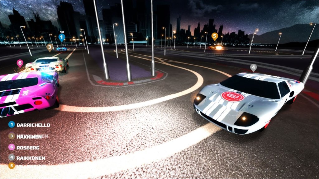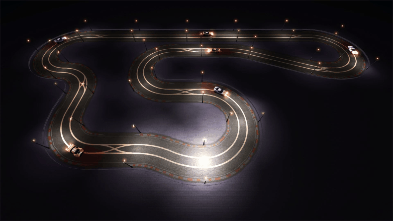 After the HWO qualifications, our focus shifted to the 3D visualisation that was to be used in the finals. For the 3D visualisation we used the Three.js WebGL library. Our design goal was to go with a darker, Tron-like scenery with higher focus on the track and cars. This decision was advantageous to us because as darkness covered most of the scenery, we didn’t have to go into extensive lengths of adding additional scenery and geometry. Additionally, this made it easier to bring the focus of the viewer to where the action was occurring—the track and cars. However, adding many different light sources and high-polygon car models brought its own challenges to the performance.