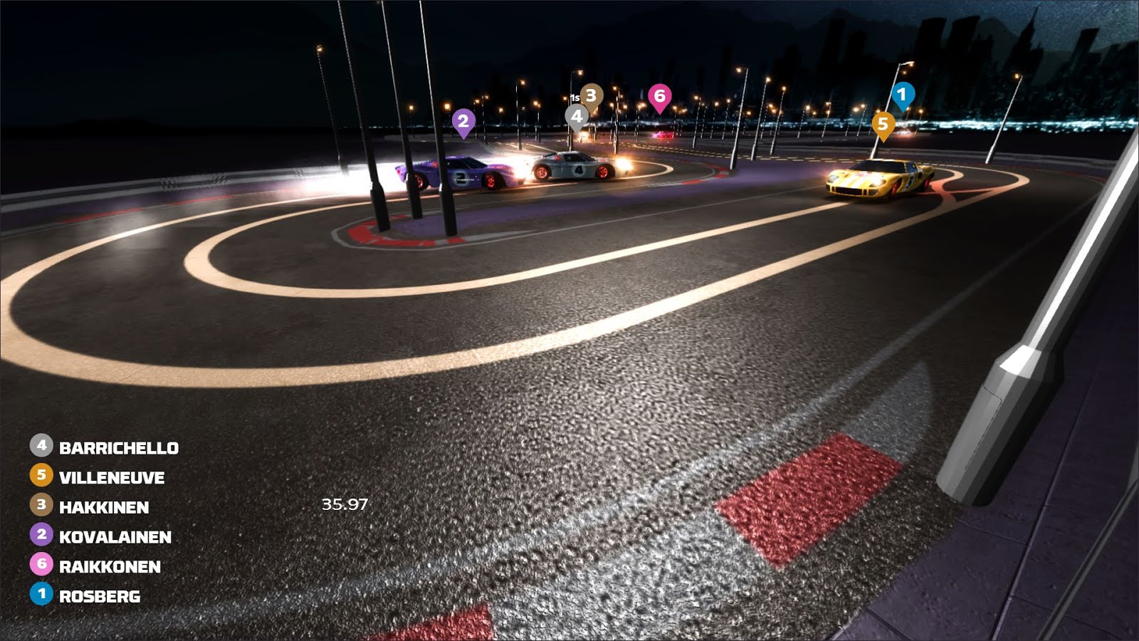 Lens flares were added for each lamp and front and rear lights of each car. The brightnesses of the lighting and lens flares were configurable per camera so that the optimal settings could be obtained for each angle and position. The turbo effects consisting of blue light emitted from the exhaust pipes were made solely with lens flares.