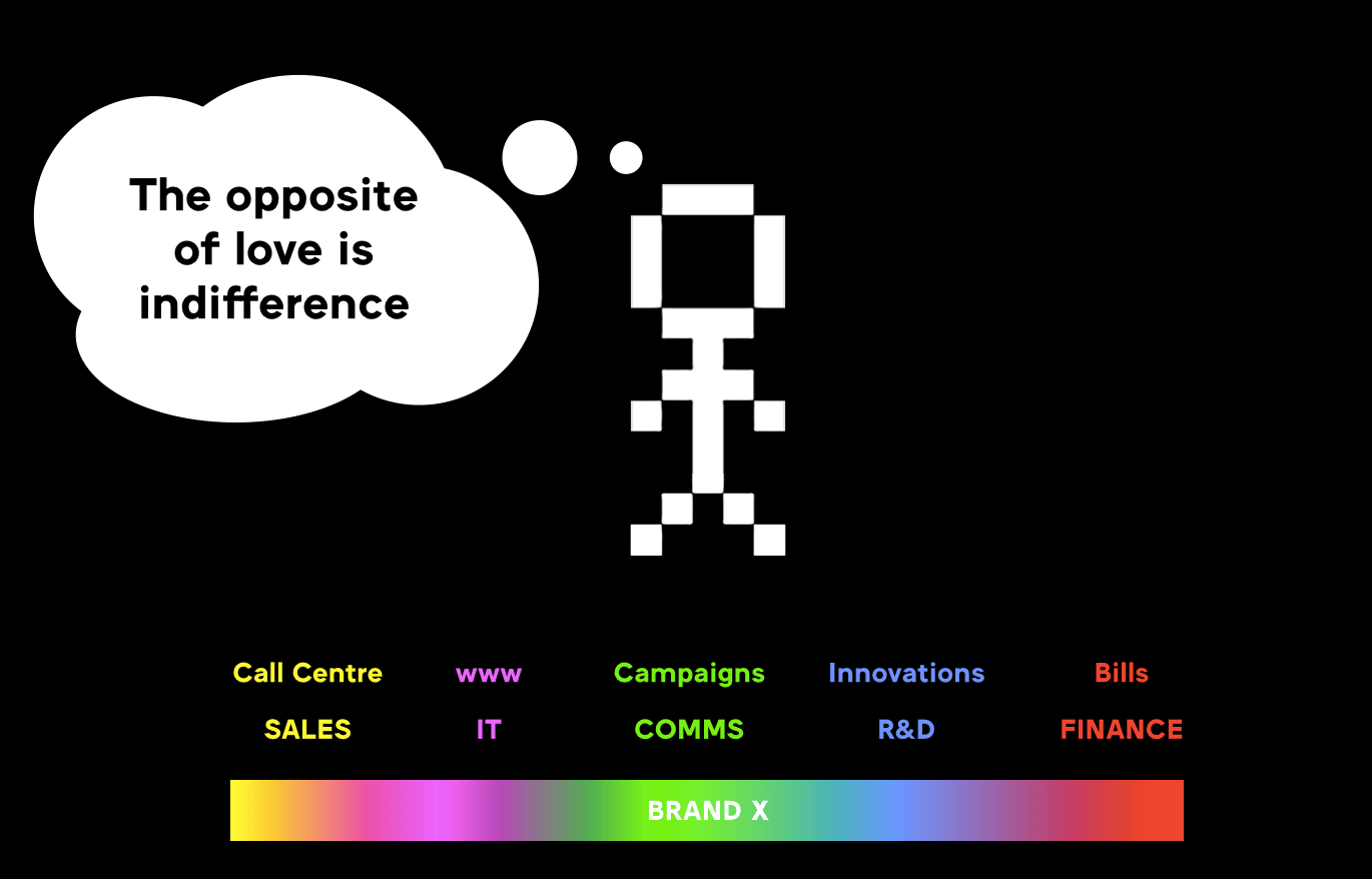 The customer is met with random acts and even contradictory messages, which leads to an incoherent experience.