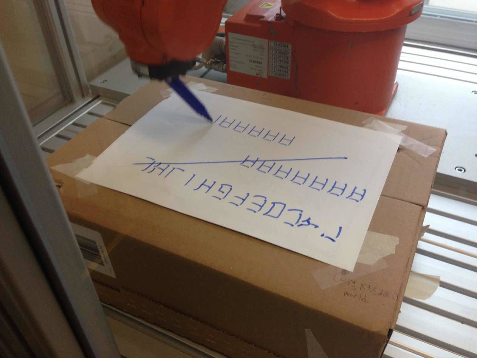 By morning, me and my colleague had managed to find the desired kids’ toy from a toy store. We created a robot writing library and a partial font (thanks Masaichi!) in a matter of hours. A quick test verified that the robot could, in fact, really write comprehensible text.