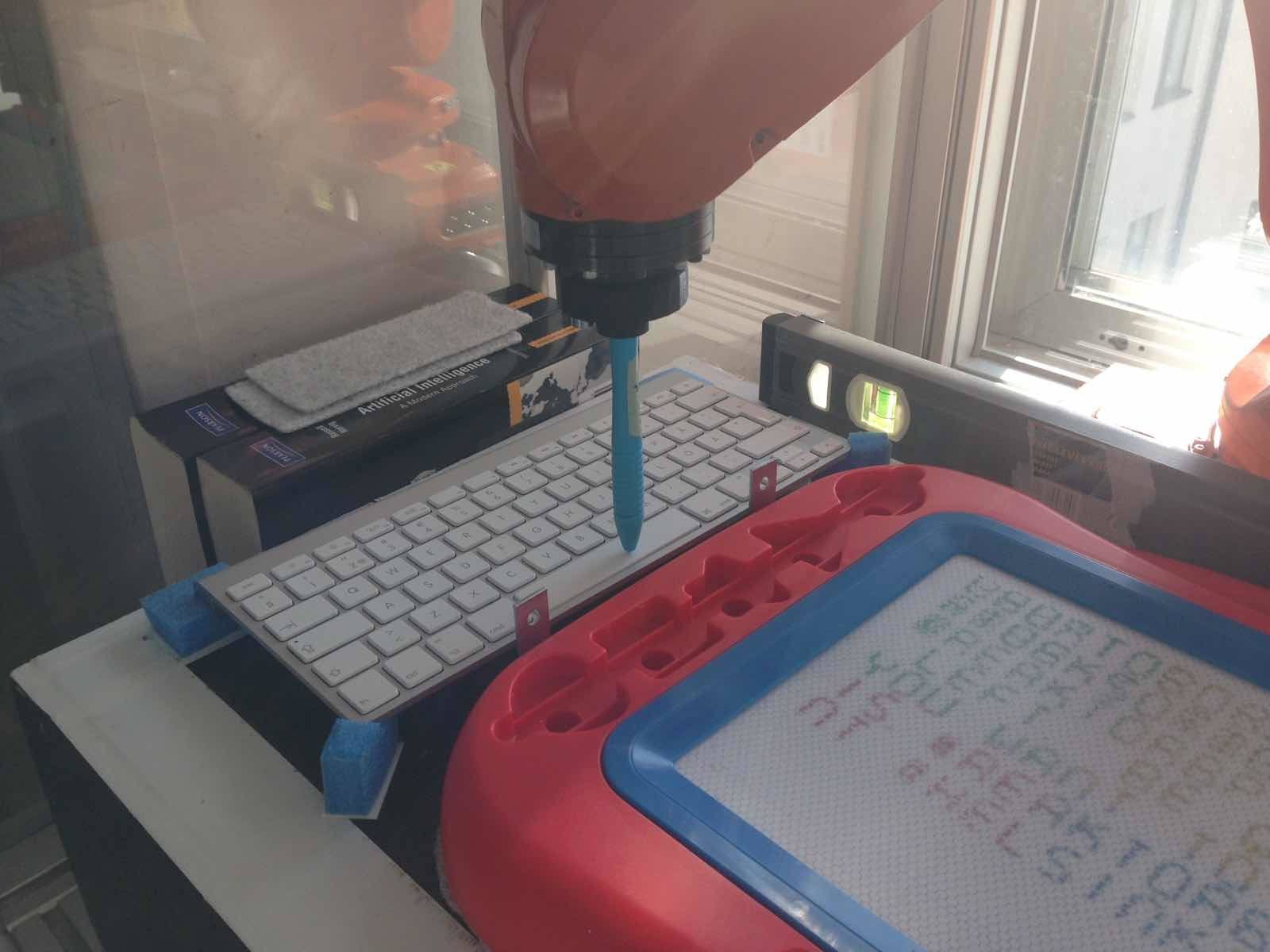 Now we only needed to get a similar toy, teach the robot to write, and wipe the text out by manipulating the lever.