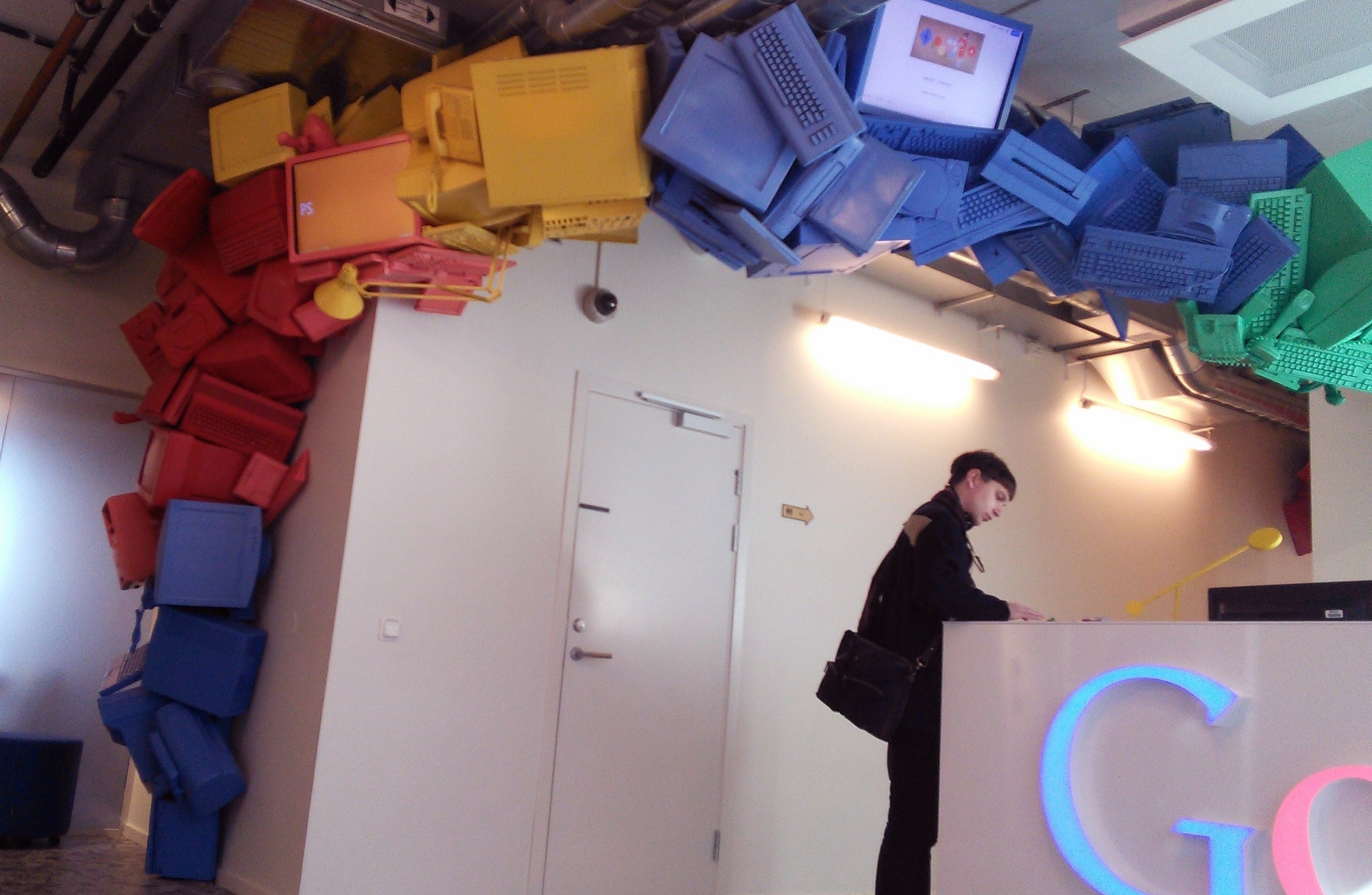 The hackathon ended with volunteer demos, dinner, and a prize giveaway. A few demos had variations on the theme of “play videos from a proprietary API using the provided BrowseFragment component”. One demo grabbed TV subtitles, pushed them through natural language processing and Wikipedia and displayed cards on your phone related to what you’re watching. Another waved a phone around on a robotic arm. In retrospect I’m not actually sure how it related to Android TV, but it was impressive.