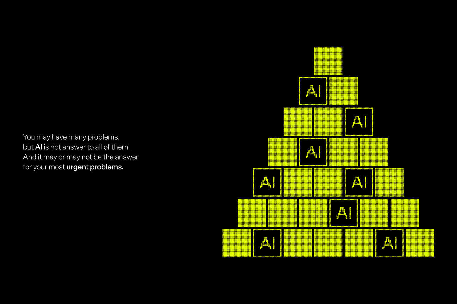Early in the engagement, we showed the value of a more systematic approach. Instead of treating AI as the default answer, we focused on covering the root causes of business challenges. Together, we reframed the work around core business objectives, end users, and customers – moving the conversation beyond available technologies.