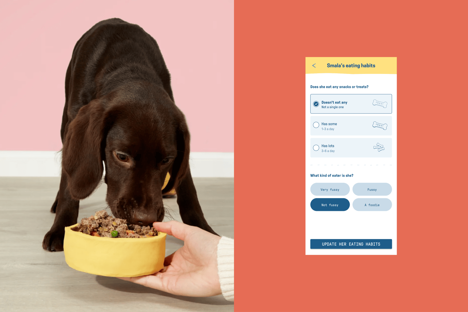It gets really interesting when you combine data with Butternut Box’s expertise in nutrition. The app is designed to evolve as the customer’s pup grows — suggestions for appropriate food come at the right moments, taking the guesswork off the owner’s plate. The result is happy, well-fed dogs, and confident, well-informed owners.