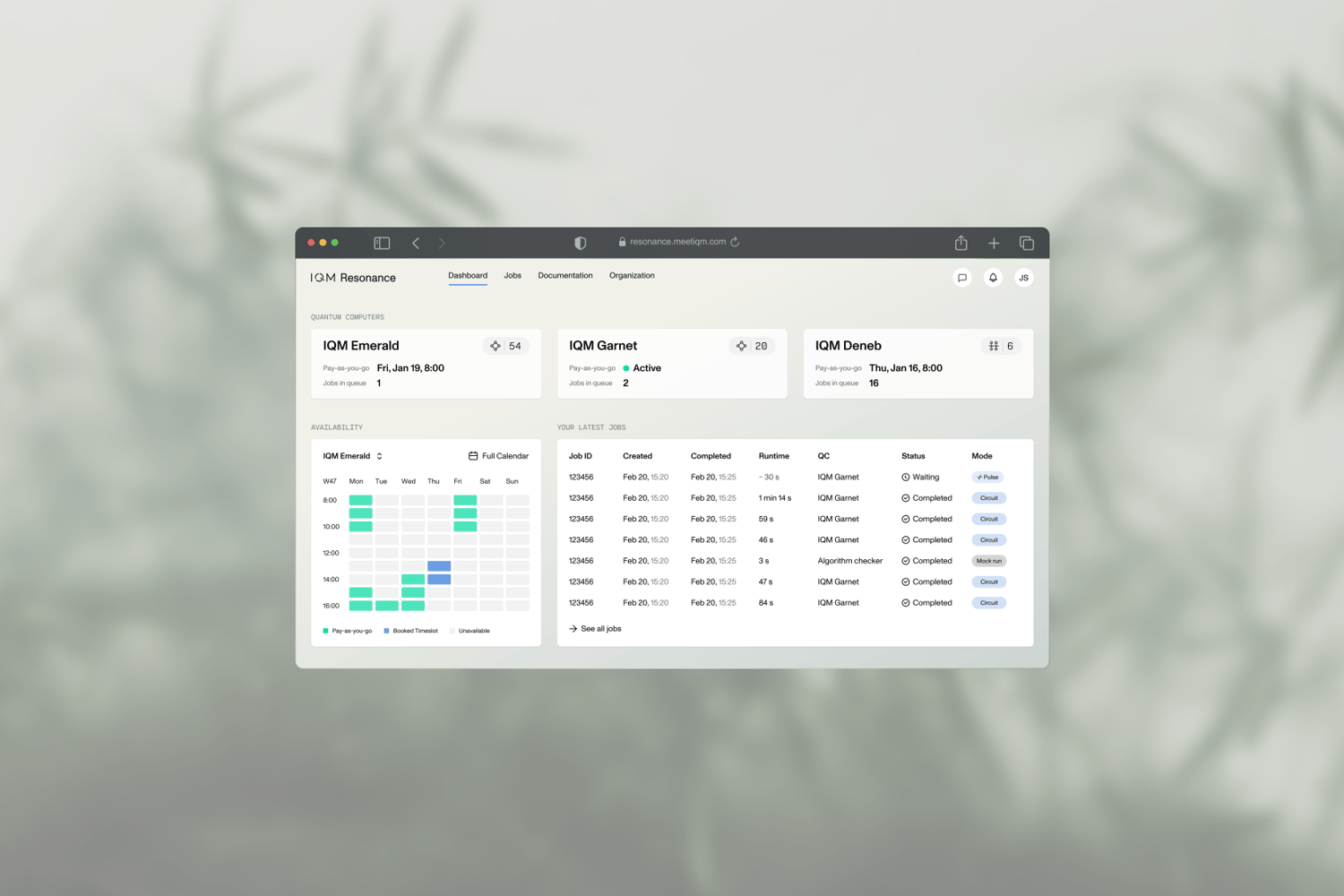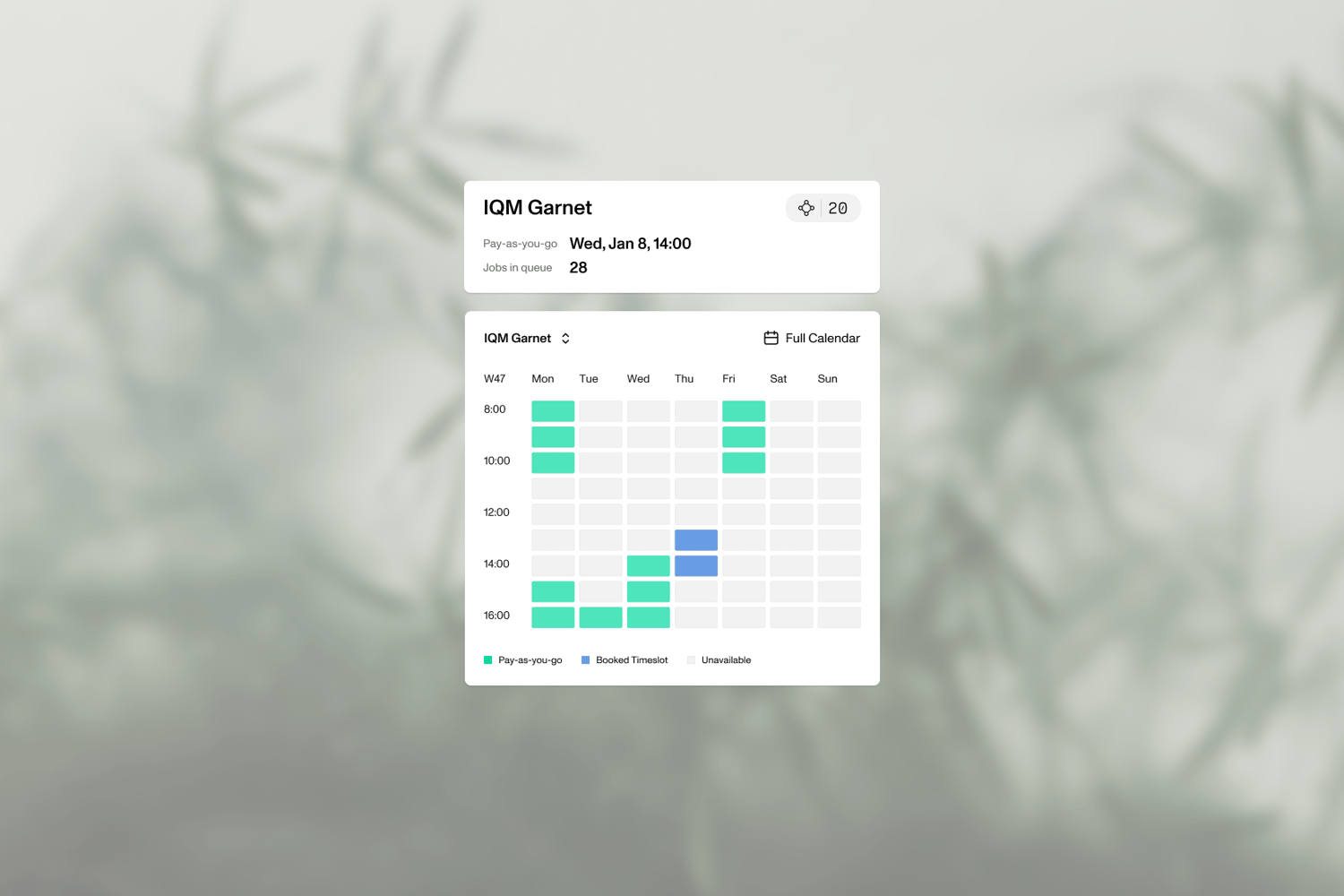 IQM develops quantum computers based on two distinct architectures – Crystal and Star, which is an industry-exclusive. Through IQM Resonance, users can explore hardware specifications, quality metrics, and real-time availability calendars for each quantum computer. This allows them to make informed decisions on the best hardware for their specific algorithms or experiments.